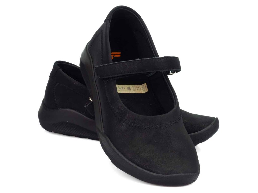 Dámská balerinka Bellamy v elegantní černé barvě je ideální volbou pro ženy, které hledají pohodlnou, lehkou a stabilní obuv pro každodenní nošení. Pásek přes nárt zajišťuje lepší fixaci chodidla, takže bota skvěle drží i při delší chůzi.